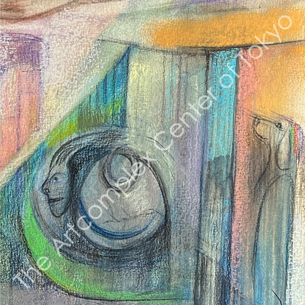 「荒野を行く」と題した作品の女性の背中には、目を凝らすと消え 耳を澄ますと聞こえなくなる音 亡くなった兄弟姉妹や、これから生まれてくるものたちが重なり、そしてまだ生きているであろう人たちを乗せたそりを曳いています。もしかしたら彼女自身 既にこの世のものではないのかもしれません。あまりにも簡単に滑り落ちてしまう「生」-曖昧な未来を宿しています。