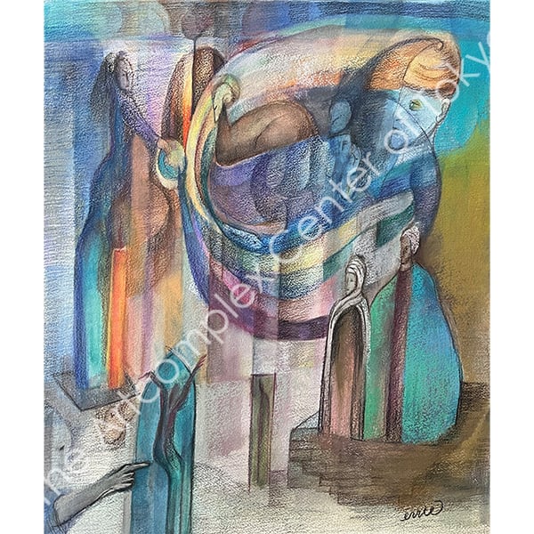 Watercolored pencils, pastel, soil-based watercolors on watercolors paper with frame.