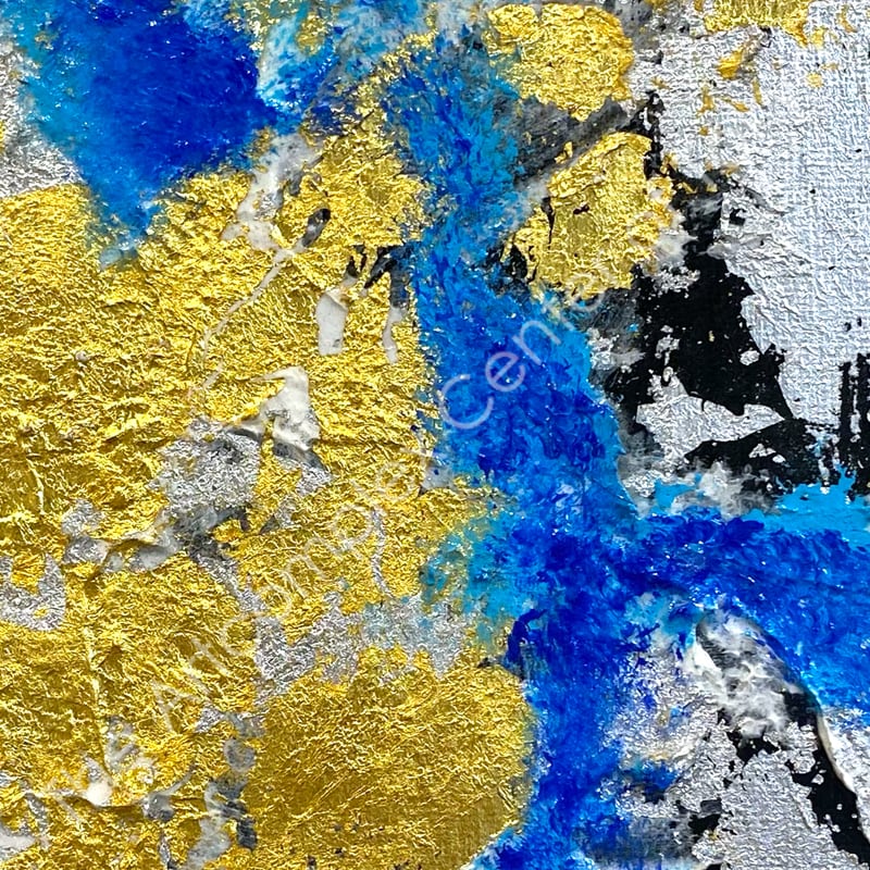 Cotton canvas, acrylic, aluminium foil, gold leaf
