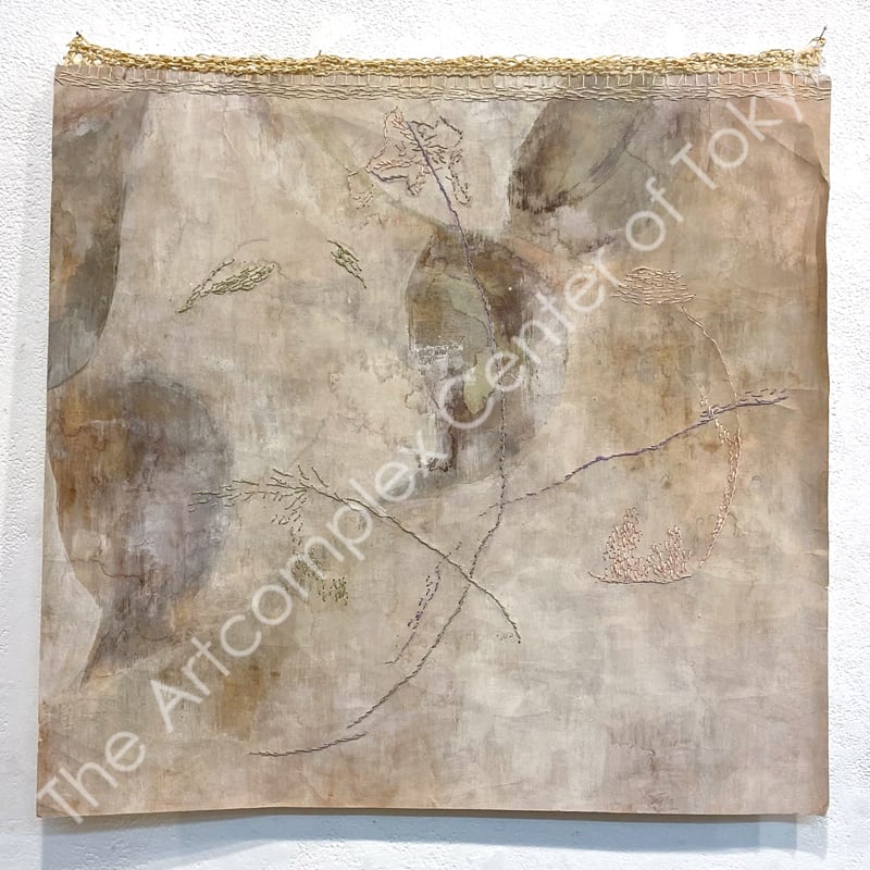 Mineral pigment, Soil, Thread on washi / japanese traditional paper