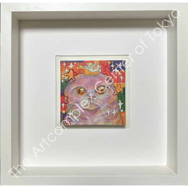 和紙、色鉛筆、岩絵具/額付き