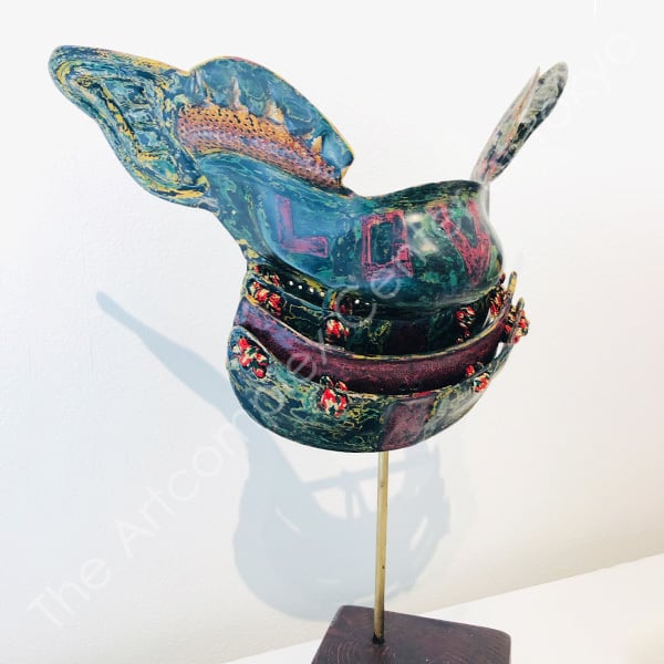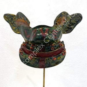 漆・江戸時代の半頰・純銀箔・メレダイア・鮫の歯・トカゲ革・クロコダイル革・エイ革/台座付き