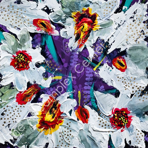 堂々と咲く生花を擬人化し、生きていく上でのさまざまな感情を色に込めた。