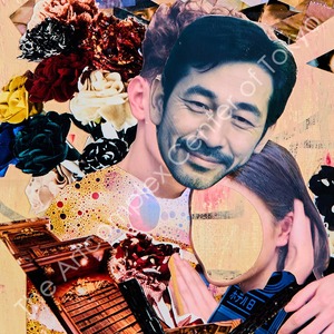 「叶わない恋」を主題に、願いと現実の相対を作品にした。AI生成した理想の彼を用い、上部の円は完全な理想、下部のコラージュは現実に願望を重ねた妄想を表現。円の写真は漂白を用いて記憶の改竄を、下地には妄想の恋愛チャートを潜らせた。