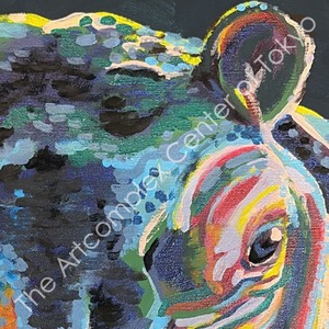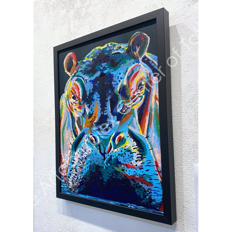 生物が持つ強さ、美しさを私なりに表現してみました。特にカバが持つ他者から縄張りを守る際の闘志、迫力には魅力を感じます。この絵の持ち主を強く守ってくれる存在になることを願って制作しました。