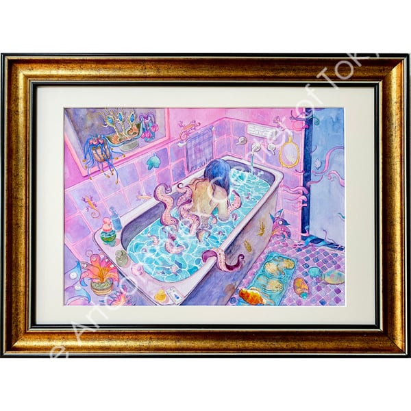 一日の仕事を終えた宇宙人が地球のアパートでほっこり湯につかる姿。故郷の星を思い出しながら、疲れを癒すほっこりとした時間を描き、心温まるファンタジーです。(シリーズ2)