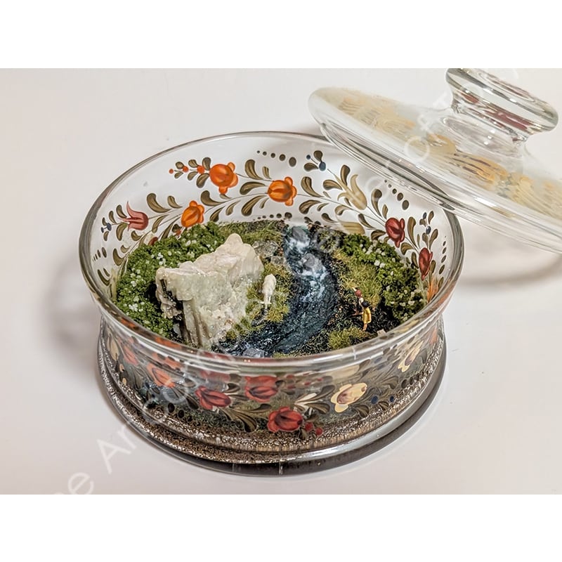 ブラジル産長石上のトルマリン、パキスタン産オイル入り水晶、ビンテージボンボニエール(1960年代)、模型用フィギュア等