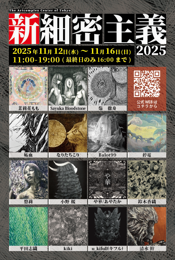 この度、アートコンプレックスセンターでは、公募グループ展「新細密主義2025」を開催いたします。「細密」の新たな可能性と奥深さを皆様に感じていただけましたら幸いです。