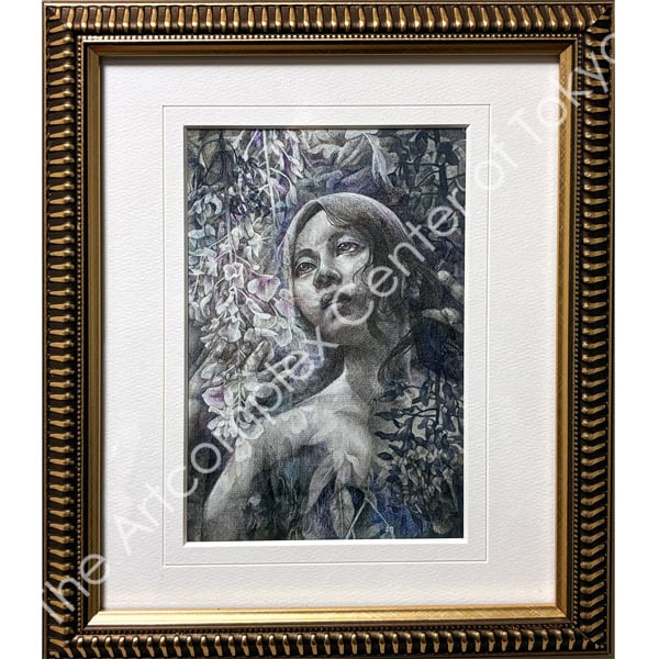 和紙/鉛筆・アクリル・色鉛筆/額付き