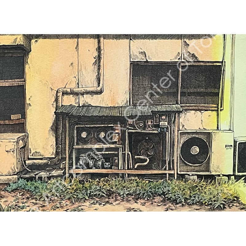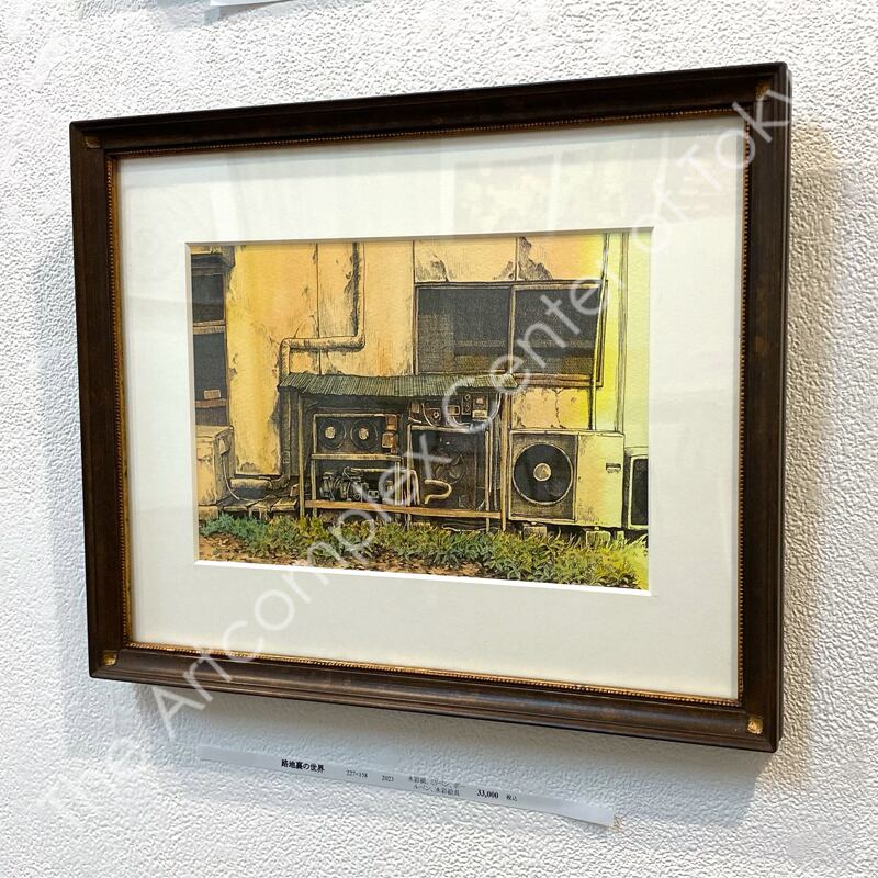 水彩紙、ミリペン、ボールペン、水彩絵具 / 額付き