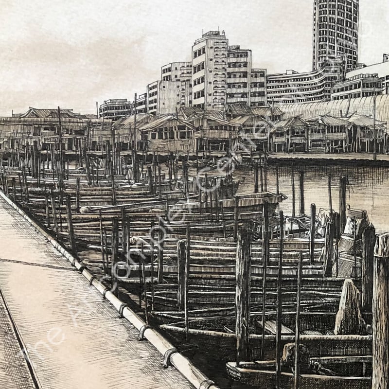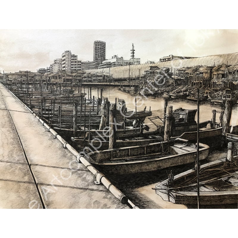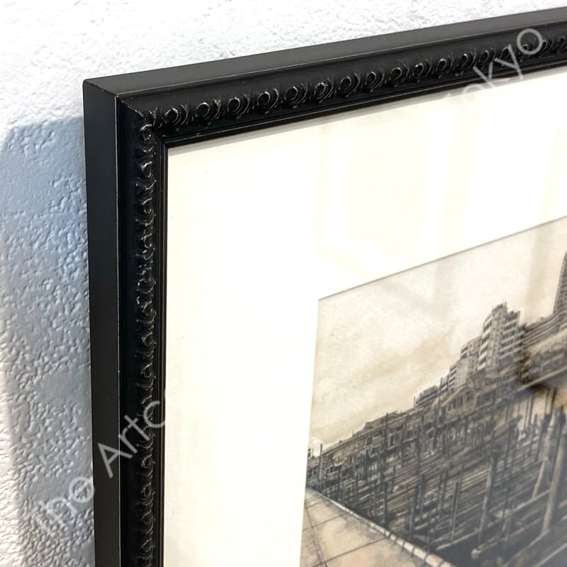 水彩紙、ミリペン、製図ペン、水彩絵の具 / 額付き