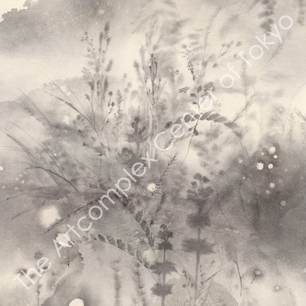 本展は、墨、色鉛筆、水彩、アクリル絵具といった多様な画材と