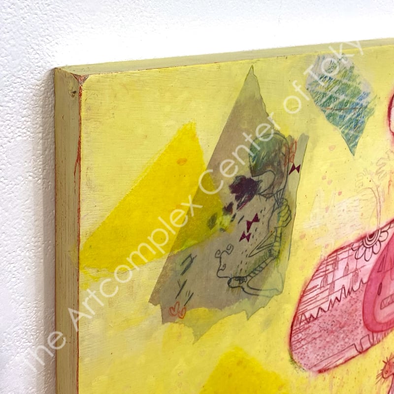 木製パネル、アクリル絵の具、障子紙、ミクストメディア、バーニッシュ