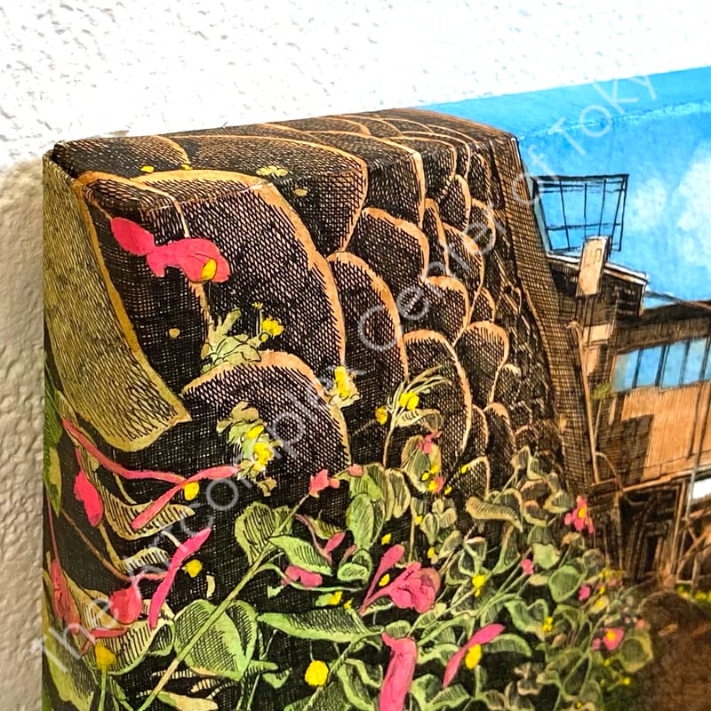 木製パネル、水彩紙、水彩絵具、ボールペン
