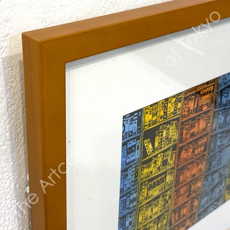 水彩紙、ミリペン、ボールペン、水彩絵具 / 額付き