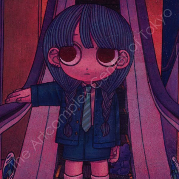 私が描き続けているのは、現実の風景と空想の断片が入り混じり、見えない奥へと続く路地のように広がっていくひとつの「世界」です。