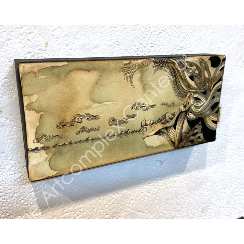 インク、コーヒー、アクリル絵の具、色鉛筆