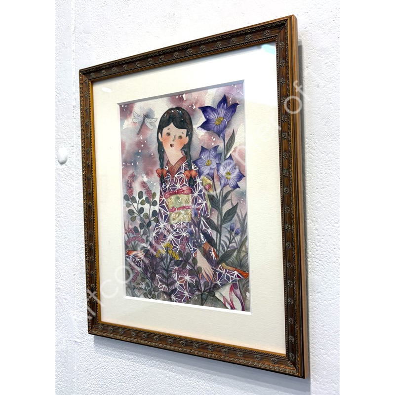 Ezumi Ink, Gansai Watercolor, Sumi Ink on Watercolor Paper with Frame