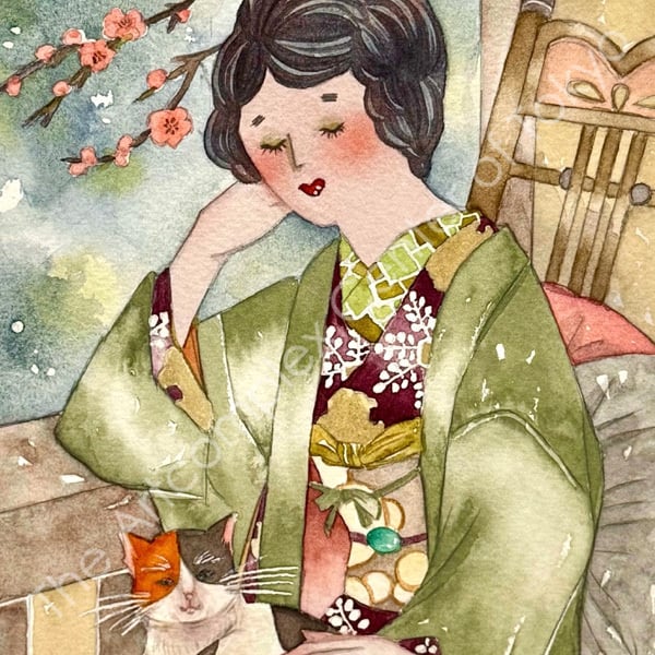 Ezumi Ink, Sumi Ink, Gansai Watercolor on Watercolor Paper with Frame