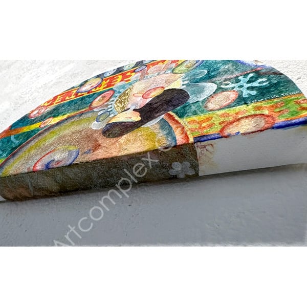 キャンバス/チタニウムホワイト(顔料)/膠/和紙/透明水彩絵の具/箔