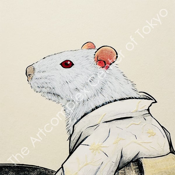 Ise Washi paper, ink, gofun white pigment, water-dried pigments