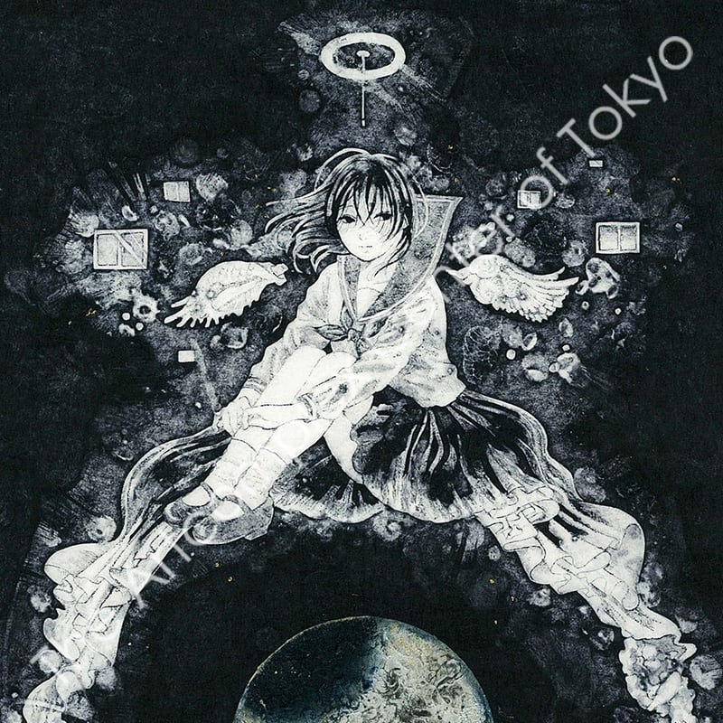 紙版画(板紙凹凸版)を中心とした手法で少女像を描く。心の揺らぎ・光とかげりを主題に制作している。