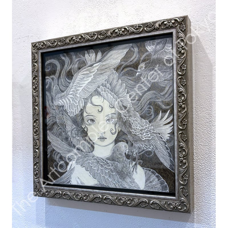 キャンバスに鉛筆、アクリル / 額付き