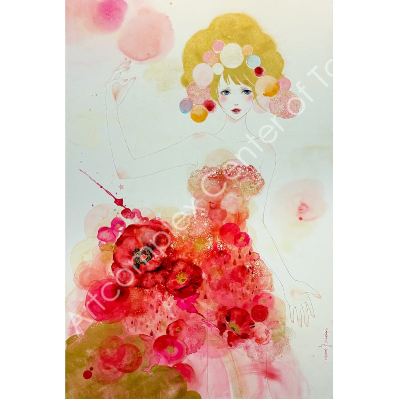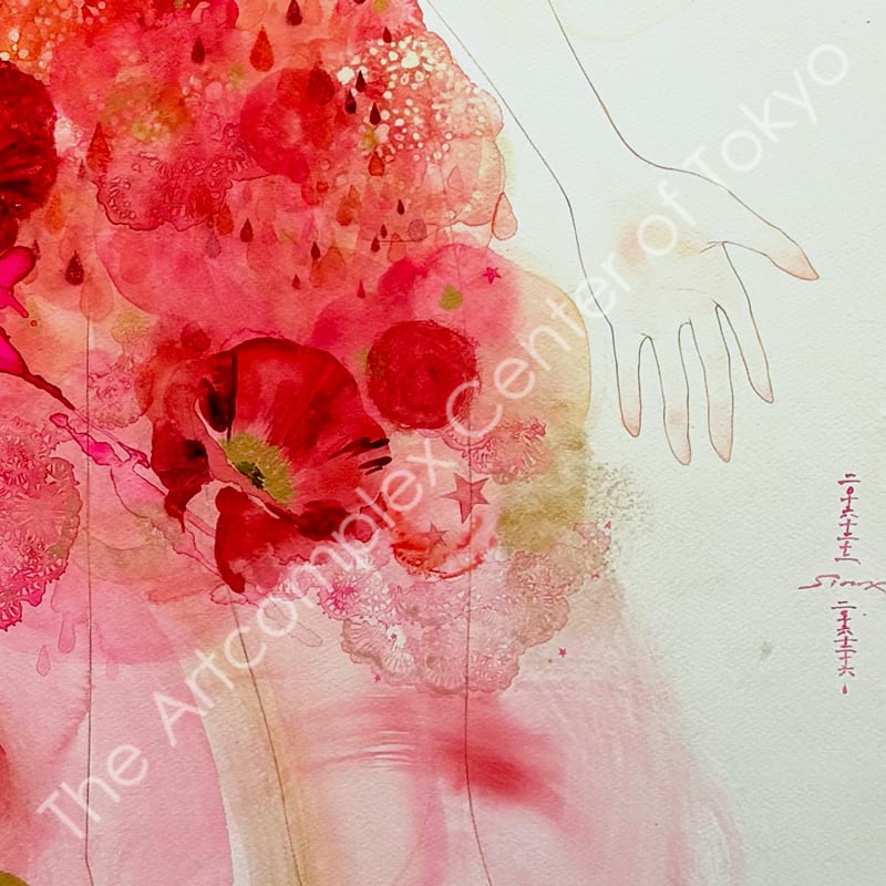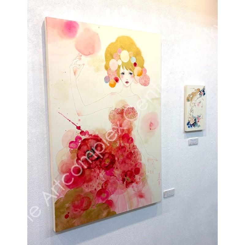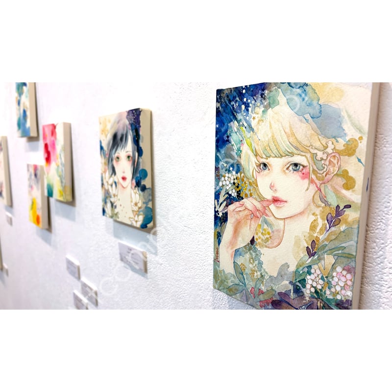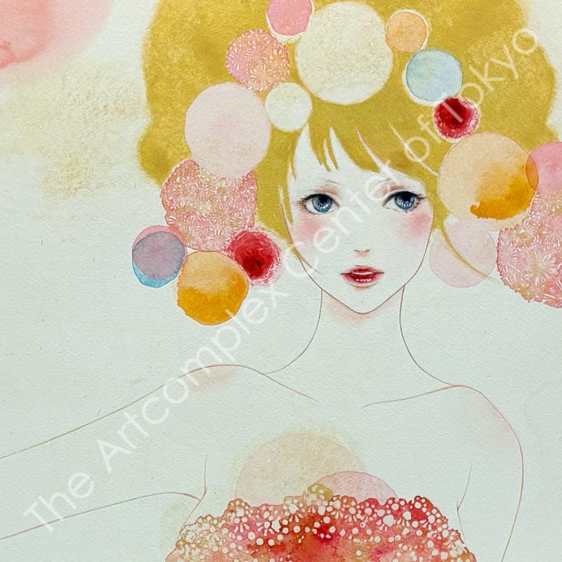 夜空を貫く彗星のように美しい一瞬の感覚の閃きを、水彩の滲みと重なりの中に閉じ込めた原画作品。