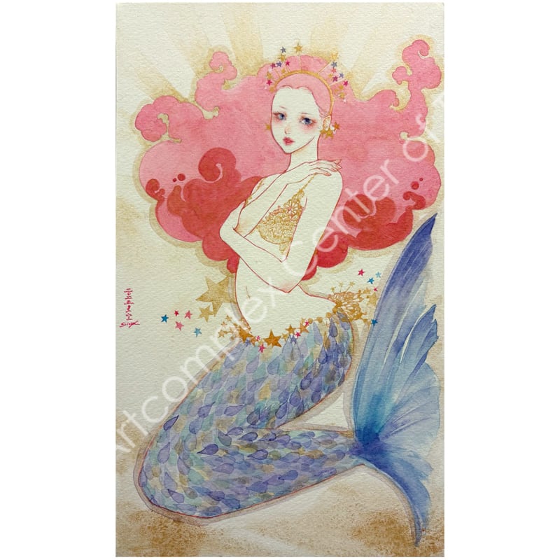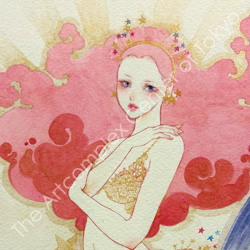 夜空を貫く彗星のように美しい一瞬の感覚の閃きを、水彩の滲みと重なりの中に閉じ込めた原画作品。
