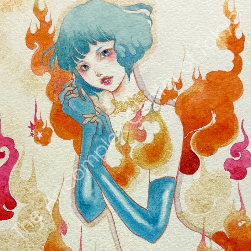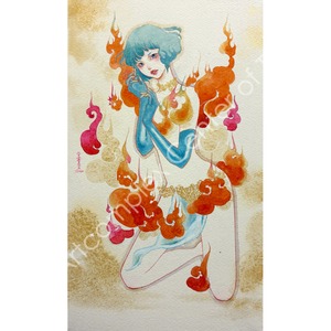 夜空を貫く彗星のように美しい一瞬の感覚の閃きを、水彩の滲みと重なりの中に閉じ込めた原画作品。