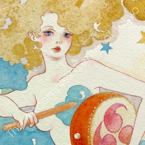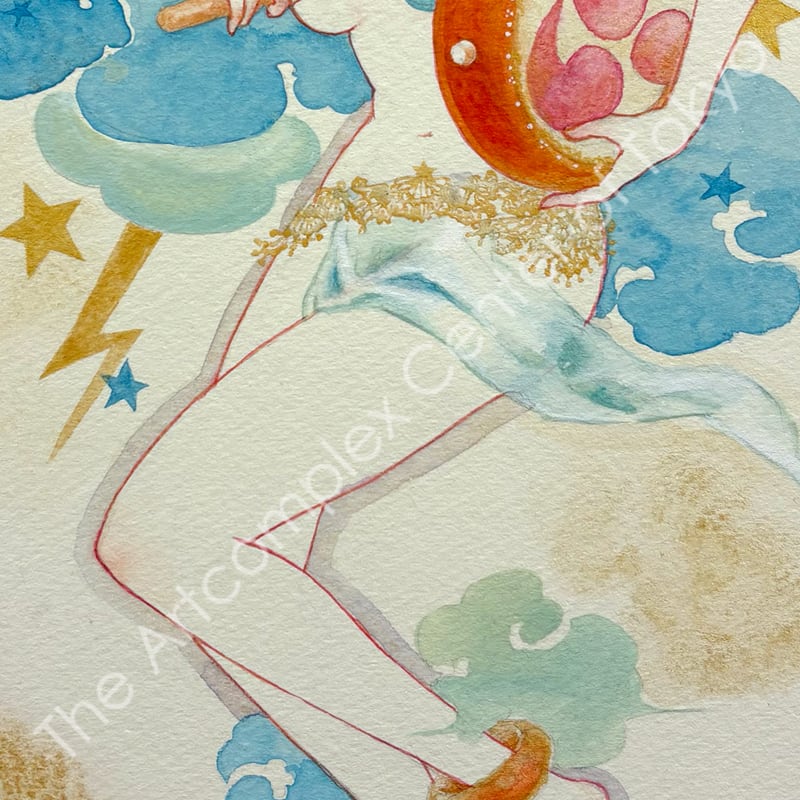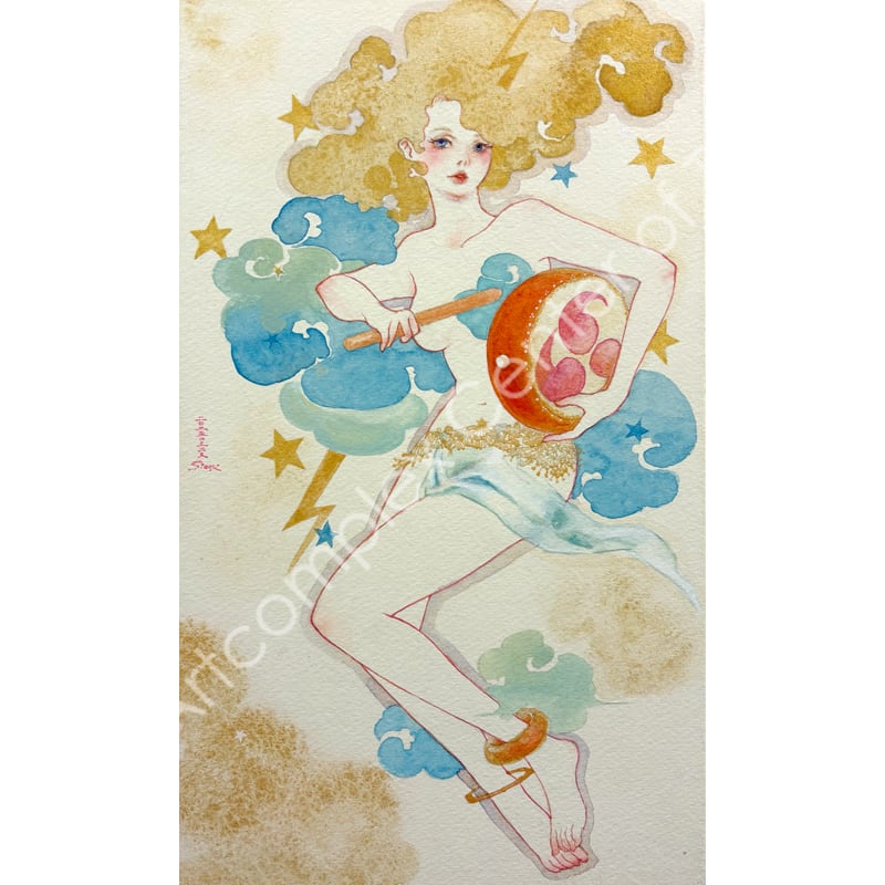 夜空を貫く彗星のように美しい一瞬の感覚の閃きを、水彩の滲みと重なりの中に閉じ込めた原画作品。