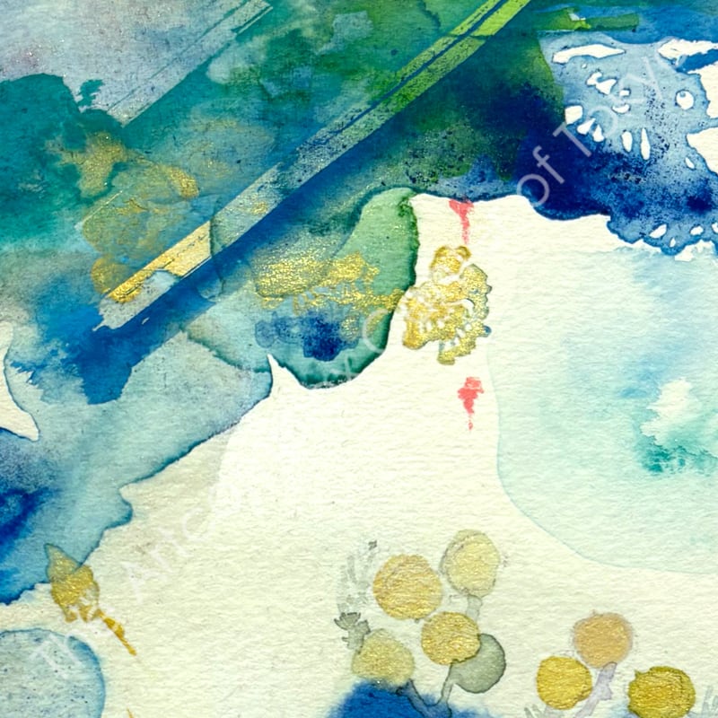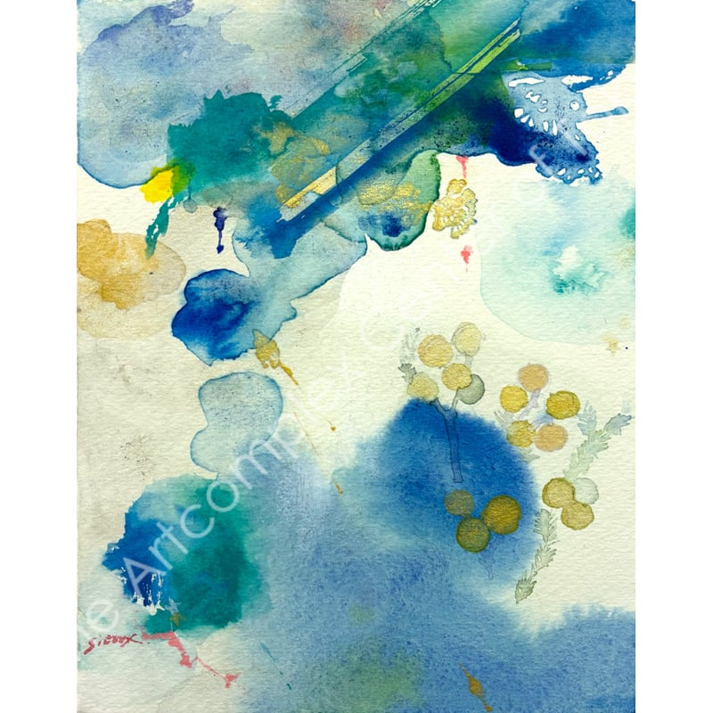 夜空を貫く彗星のように美しい一瞬の感覚の閃きを、水彩の滲みと重なりの中に閉じ込めた原画作品。