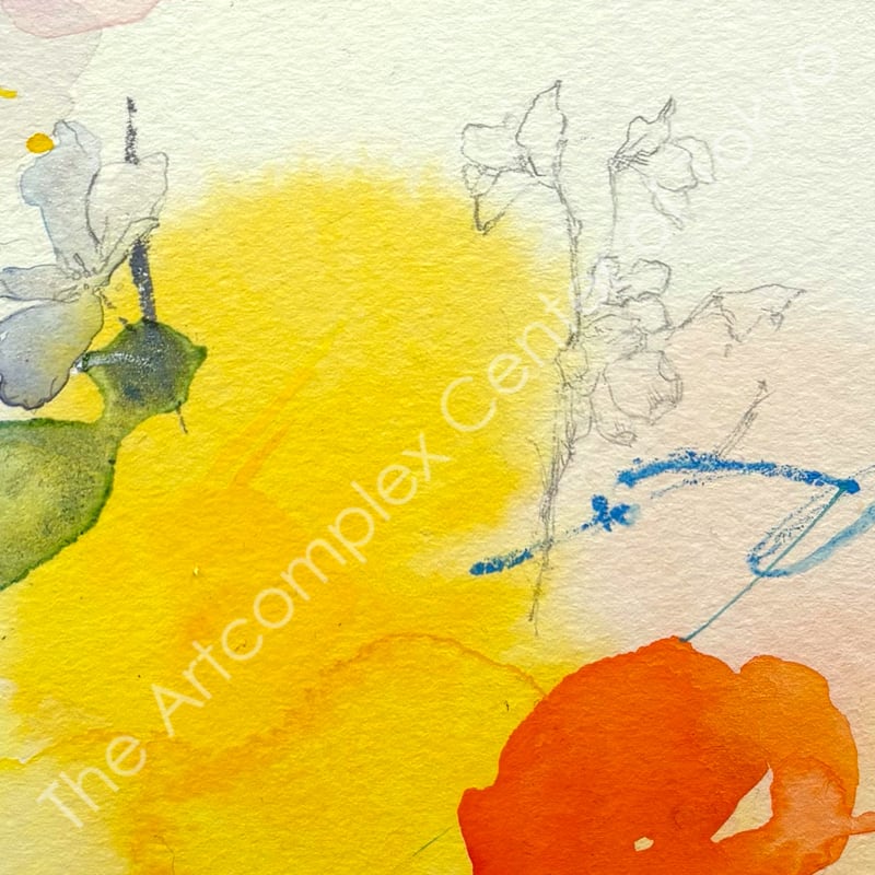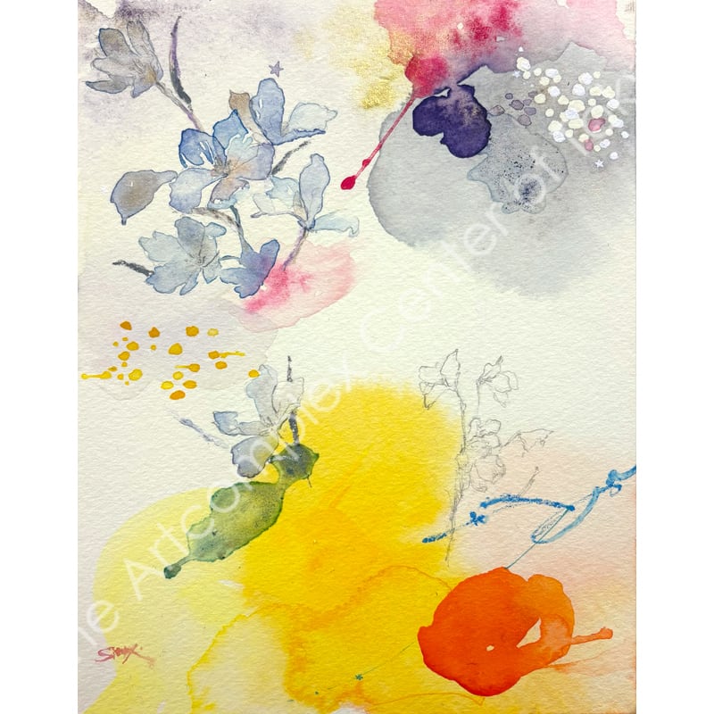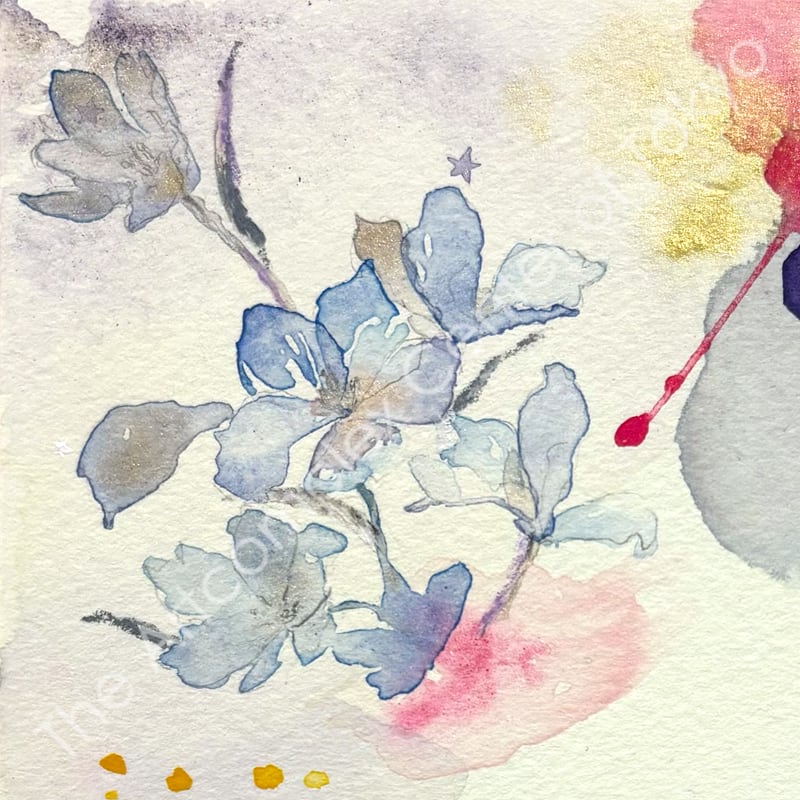 夜空を貫く彗星のように美しい一瞬の感覚の閃きを、水彩の滲みと重なりの中に閉じ込めた原画作品。