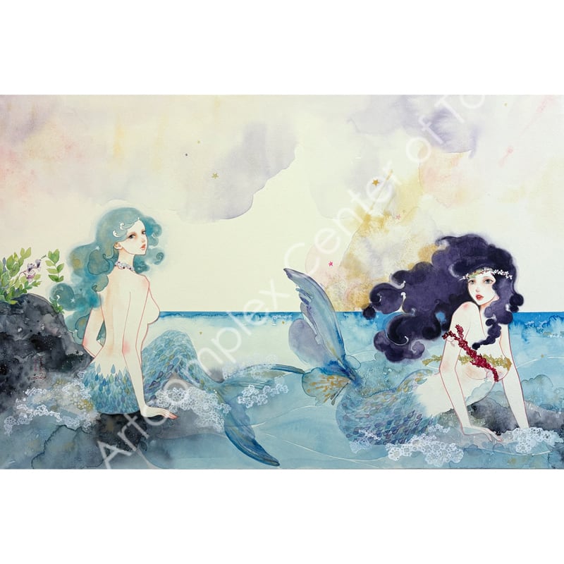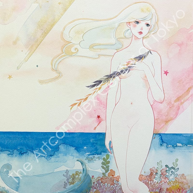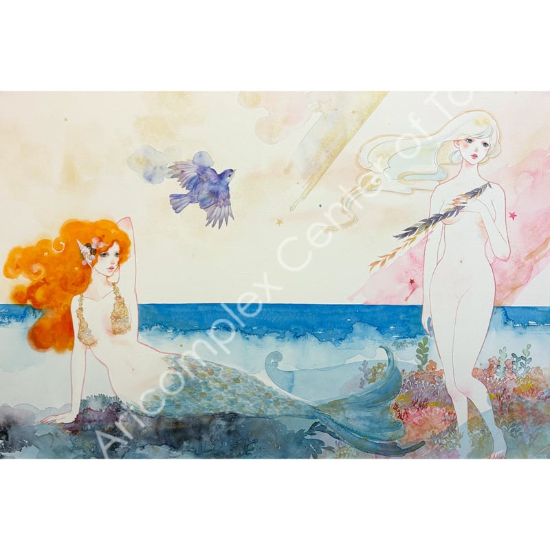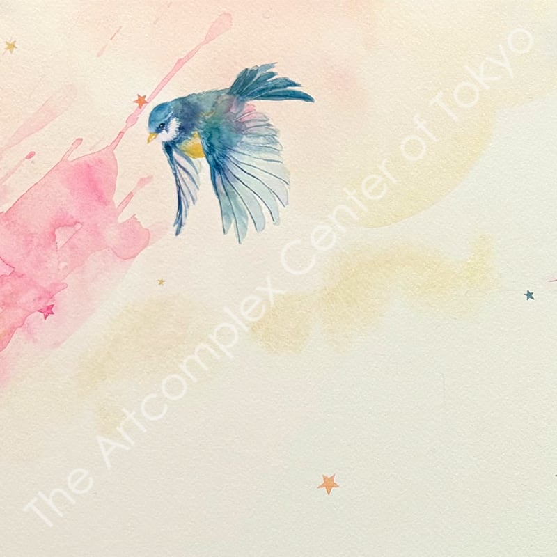 夜空を貫く彗星のように美しい一瞬の感覚の閃きを、水彩の滲みと重なりの中に閉じ込めた原画作品。