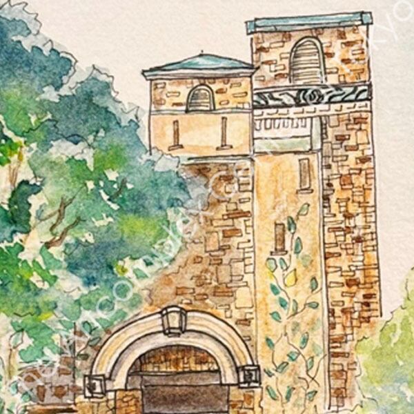 Transparent Watercolors and pen with frame.