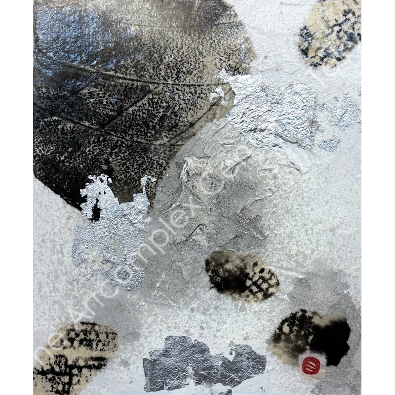 ジェッソパネル・和紙・墨液・アルミ箔