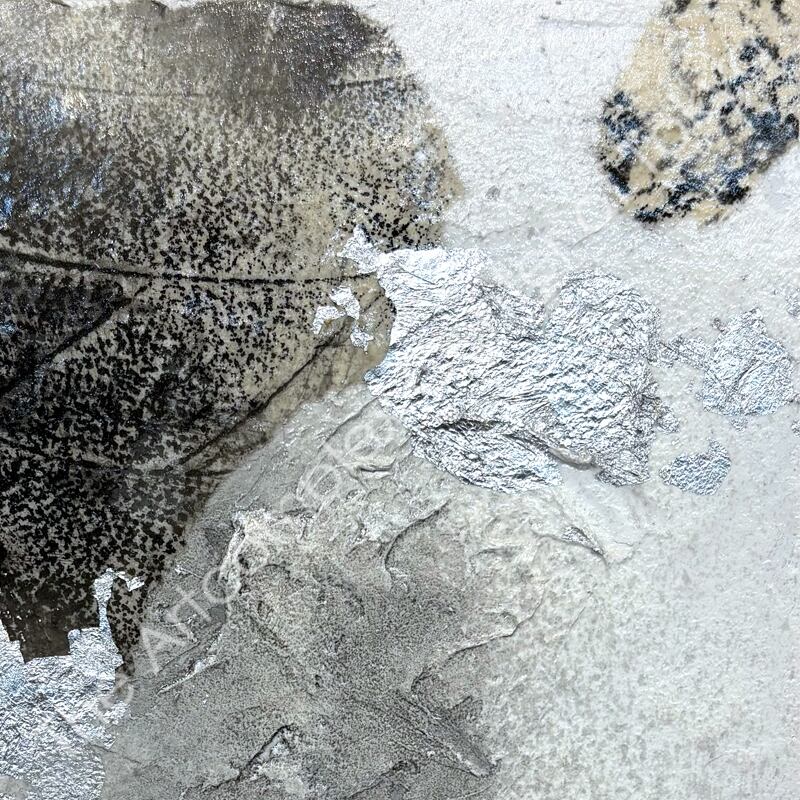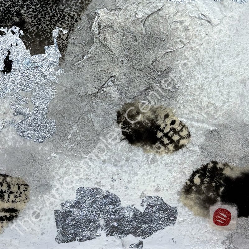 Gesso board, Japanese paper, ink, aluminium foil