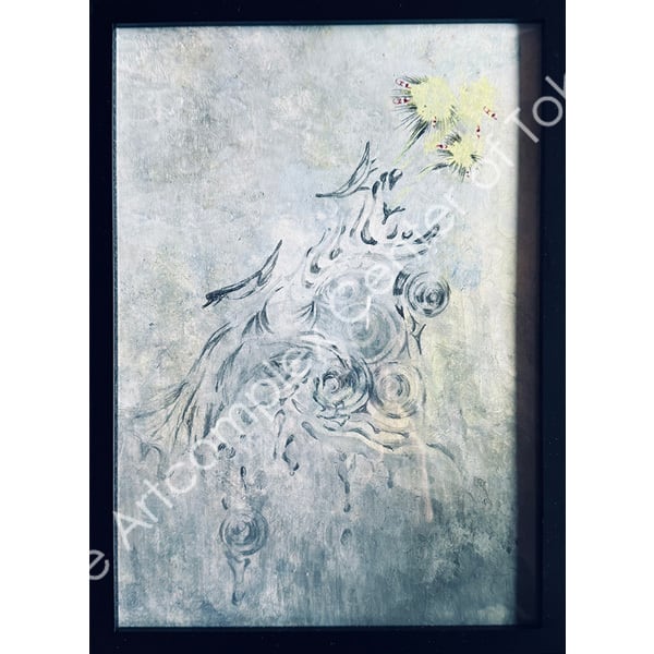 鉛筆、色鉛筆、アクリル、紙/額付き