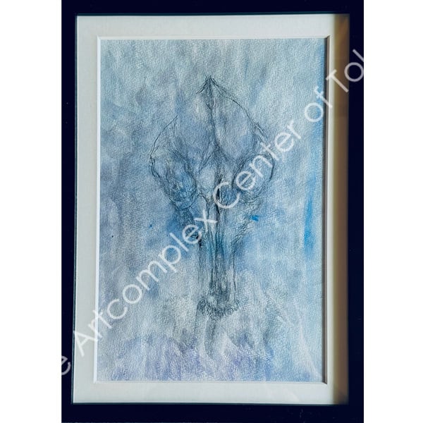 鉛筆、色鉛筆、アクリル、刺繍、紙/額付き
